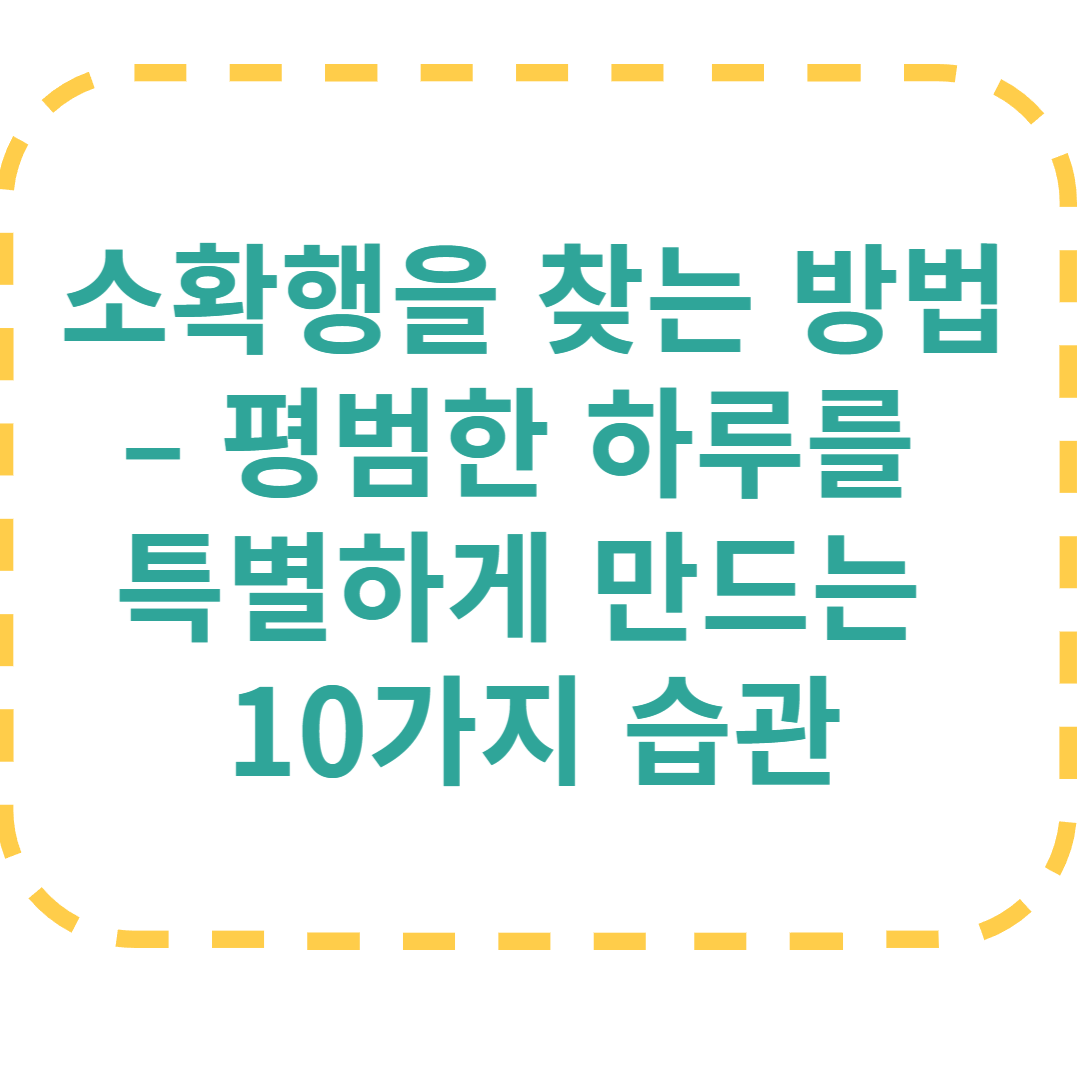 우리는 늘 **특별한 이벤트가 있어야 행복하다고 생각하지만, 사실 행복은 아주 가까이에 있습니다.** 소확행을 실천하면 **평범한 하루도 충분히 의미 있고 특별할 수 있습니다.**