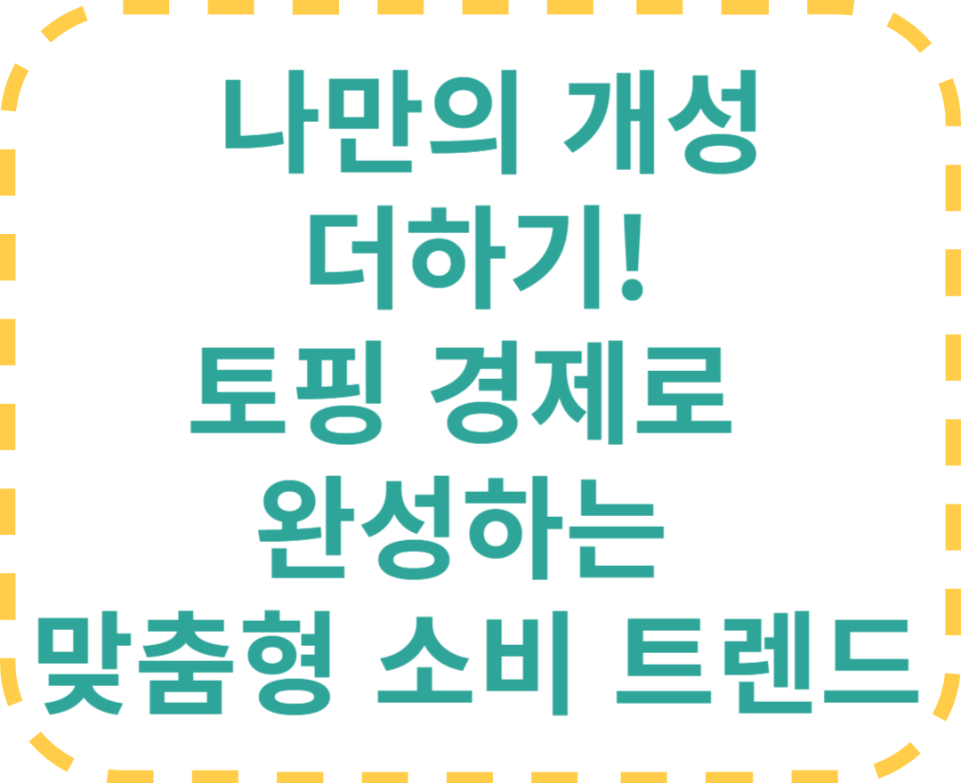 토핑 경제는 단순히 소비자가 옵션을 고르는 것을 넘어 자신의 개성을 표현하고, 소비를 놀이처럼 즐기는 방식입니다. 이제는 브랜드가 중심이 아니라, 소비자가 주도하는 시장으로 변화하고 있죠. 여러분은 어떤 토핑으로 일상을 채우고 계신가요? 지금, 나만의 개성을 담은 소비를 시작해보세요!