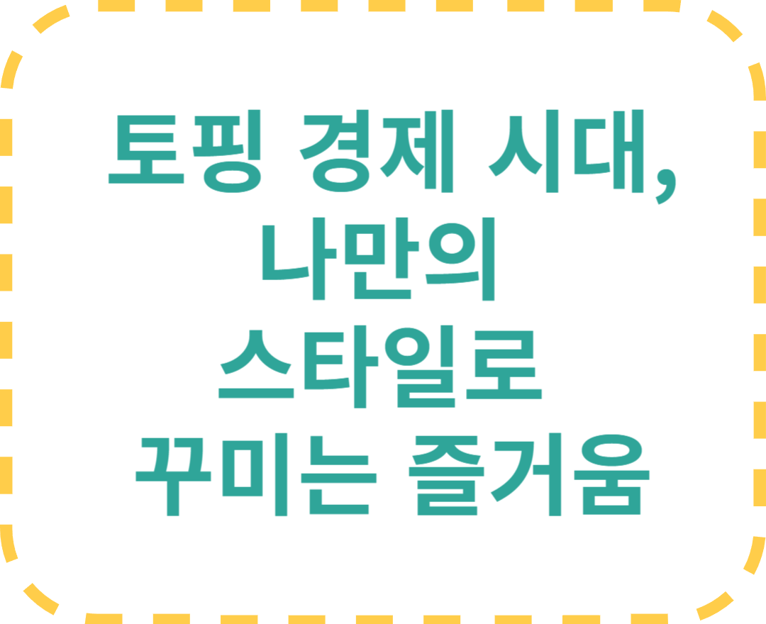 당신도 지금 어떤 제품에 ‘나만의 토핑’을 더하고 있지 않나요? 선택의 기쁨, 개성의 만족, 그리고 참여의 즐거움! 토핑 경제는 모두를 창조자로 만드는 세상의 흐름입니다.