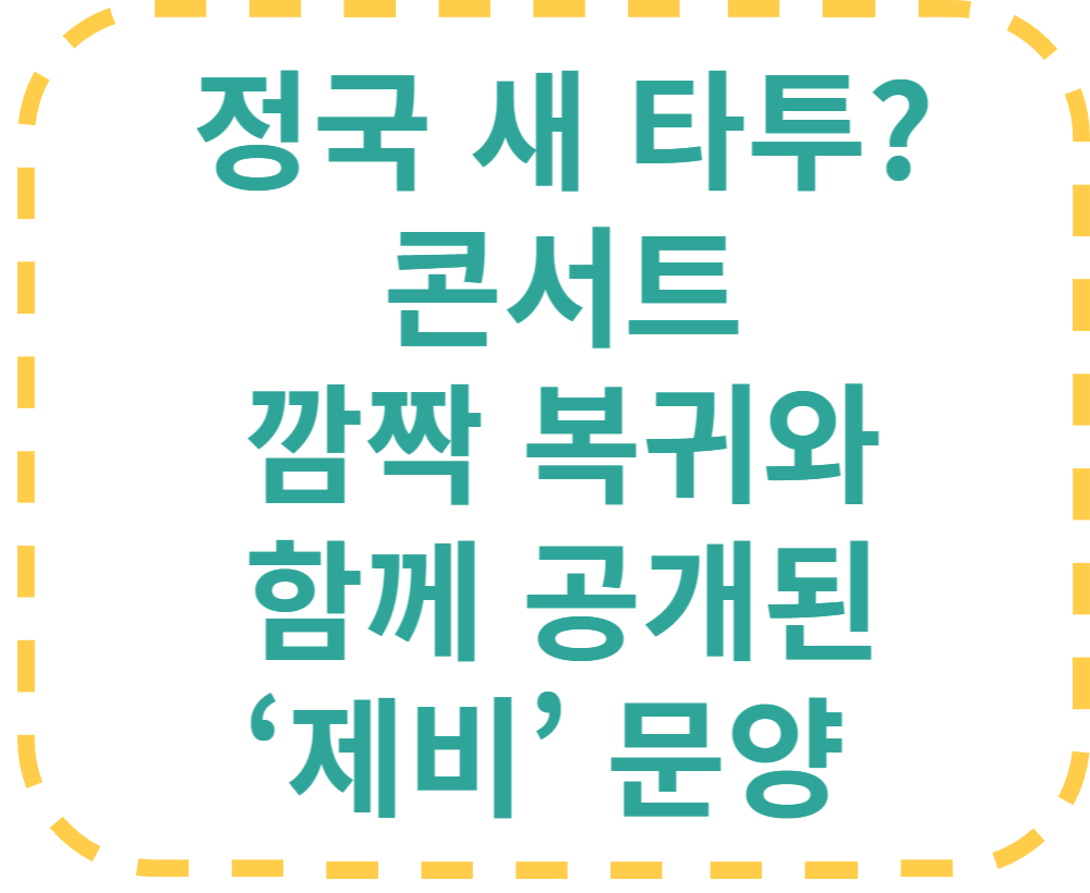 2025년 6월 13일, BTS 정국이 군 전역 직후 제이홉 콘서트에 깜짝 등장하며 무대 위에서 새로운 타투가 포착돼 팬들 사이에서 화제를 모았습니다.